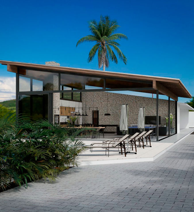 Um espaço de festas que une sofisticação e aconchego: integração perfeita entre arquitetura contemporânea, acabamentos de alto padrão e a vista deslumbrante da natureza. Cada detalhe foi pensado para proporcionar experiências únicas em um sítio exclusivo que também conta com suítes de luxo para uma estadia memorável.